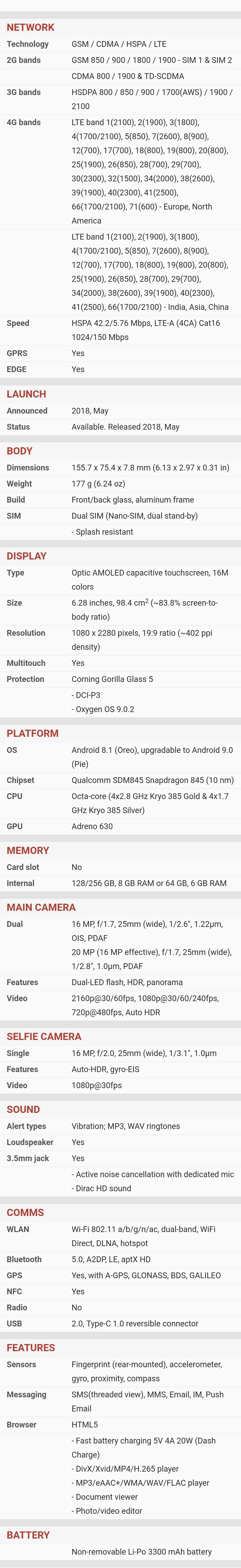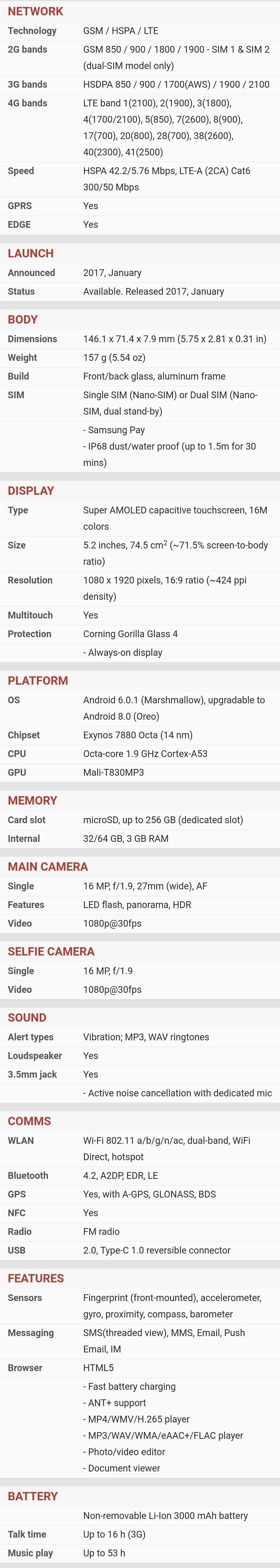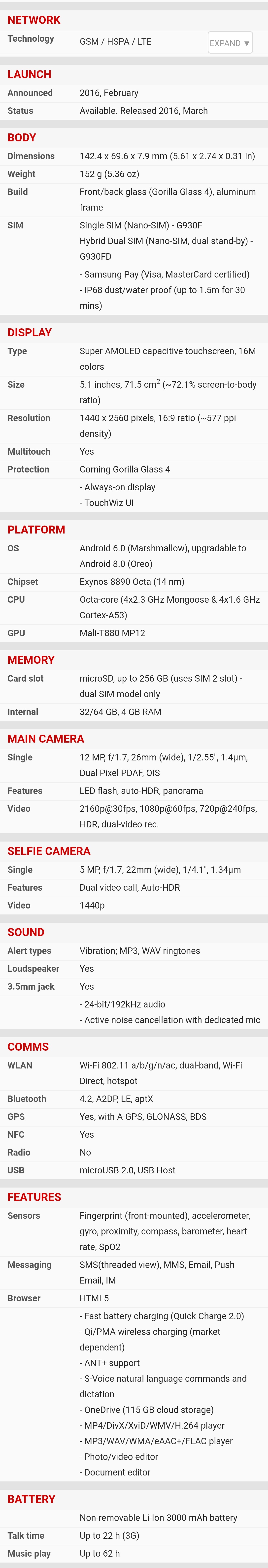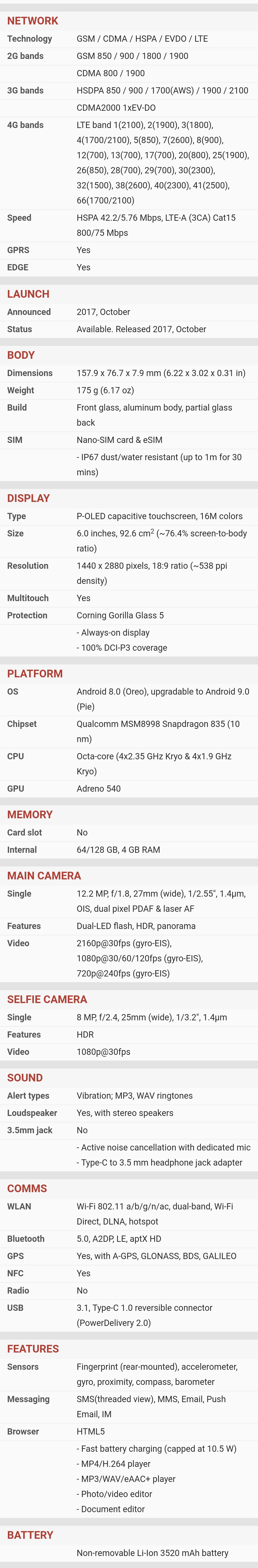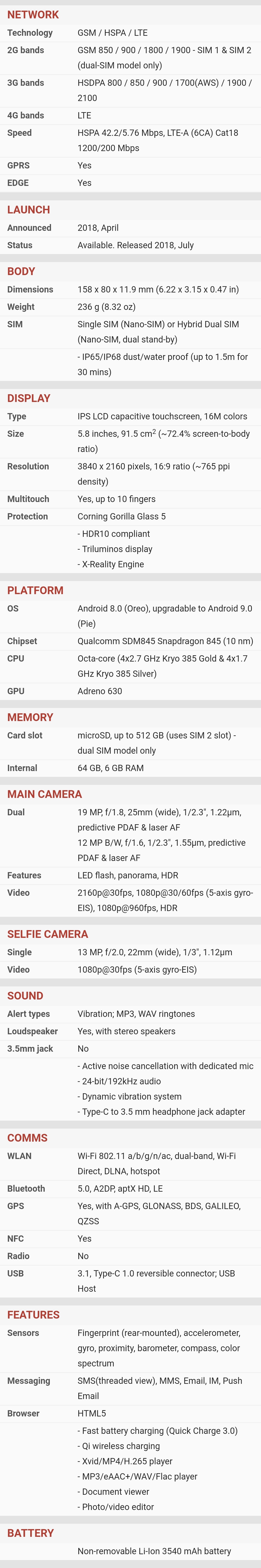 | Ekran | | | Glavni | | | | Tip : Ultra AMOLED | | | Veličina : 6.3 inča | | | Broj boja : (24-bit) 16.777.216 boja | | | Rezolucija : 1440x2960 piksela | | | Ostalo : osetljiv na dodir, | |