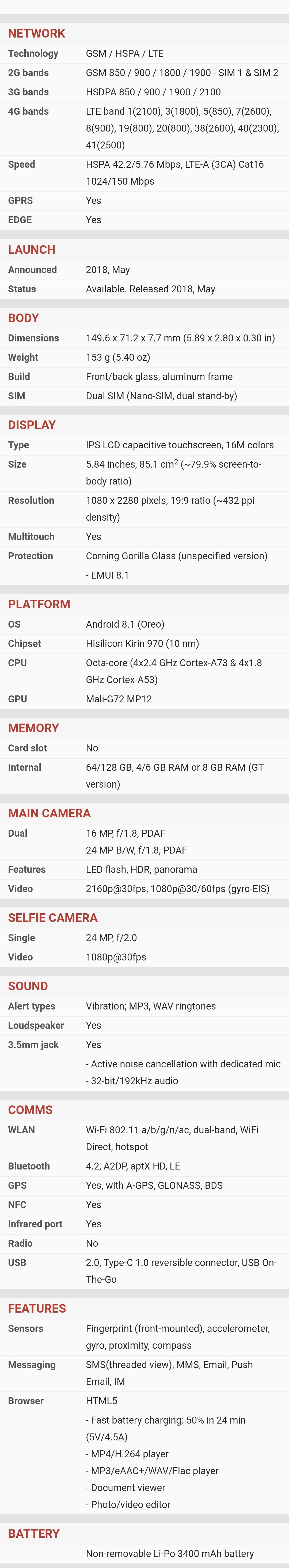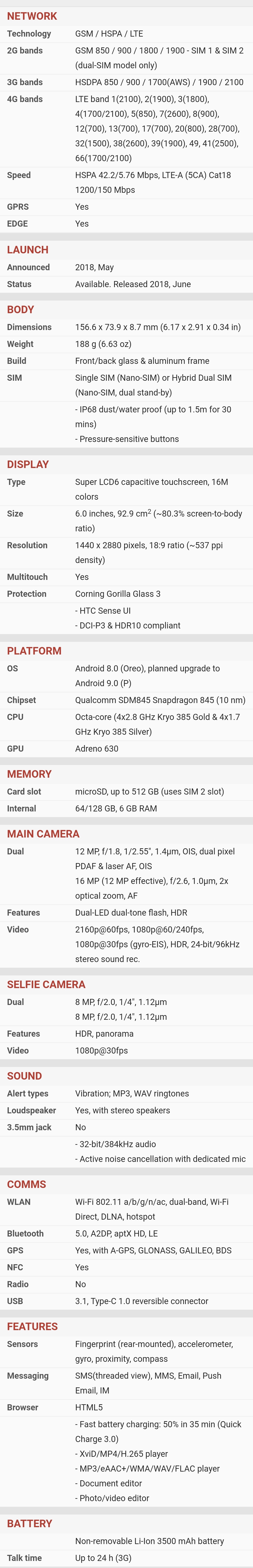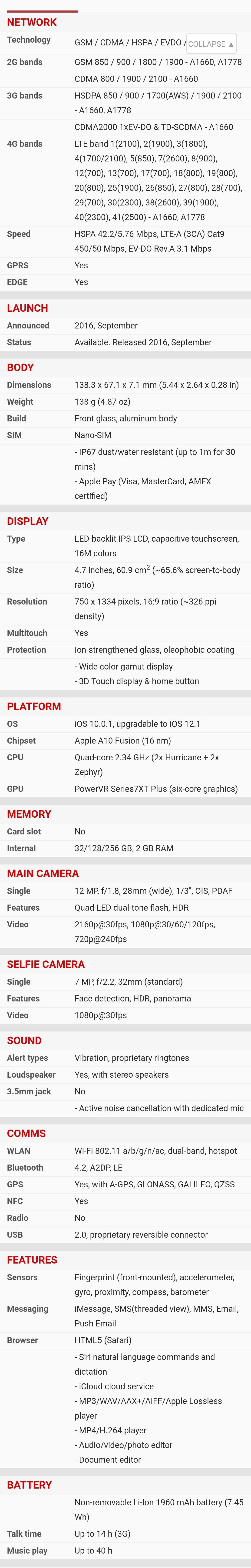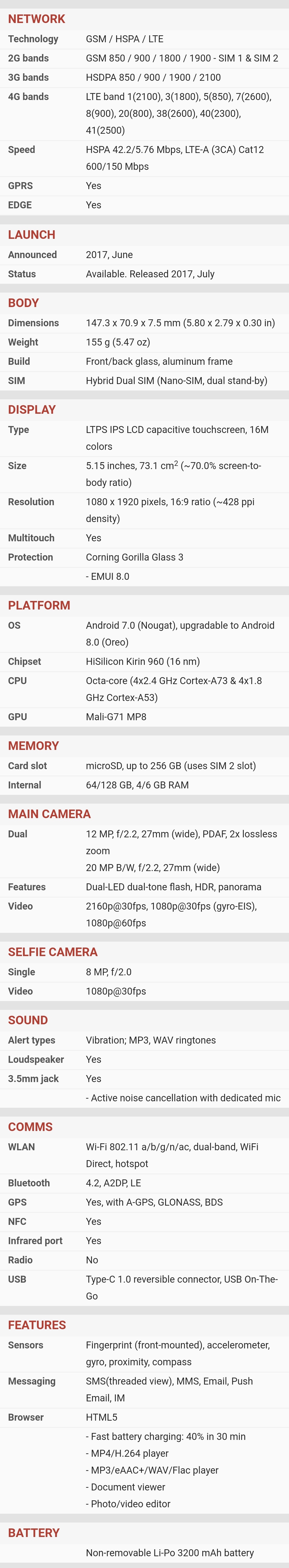 | Kamera | | | Glavna | | | | Orijentacija sočiva : sa zadnje strane | | | Broj piksela senzora : Dual 12 megapiksela | | | Rezolucija videa : (720p) 1280x720 piksela, (1080p) 1920x1080 piksela, (2160p) 3840x2160 piksela, | | | Ostalo : video zapis, optički zoom, blic, autofokus, | |